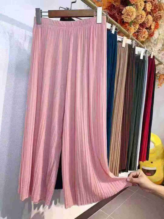 下身九分裤[太阳]全清8.5、3900件,夏季新款冰丝垂感凉凉百褶阔腿直筒宽松...