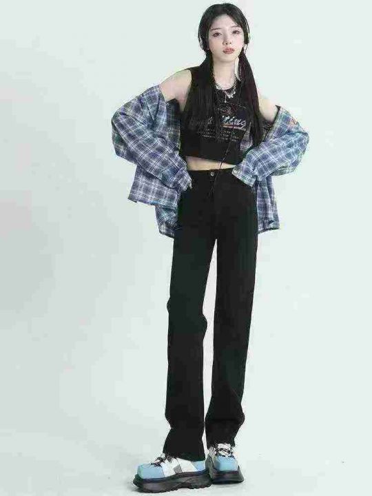 亏本清仓处理194件高品质水洗高腰修身黑色直筒牛仔裤。小整款。面料柔软舒...