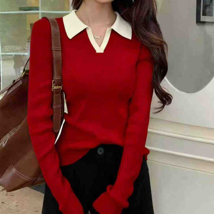 品牌原单秋季新品法式气质高级感Polo领长袖套头毛衣,独立包装带吊牌,均码...
