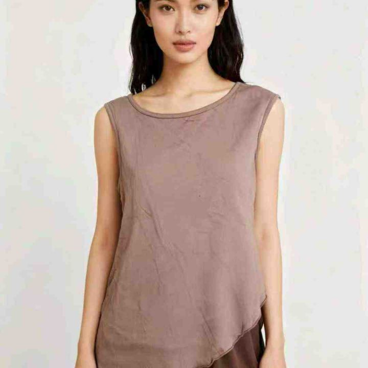 2.5清工厂回收800件纯色褶皱设计感背心上衣,码数S-XL。面料柔软有弹性,褶...
