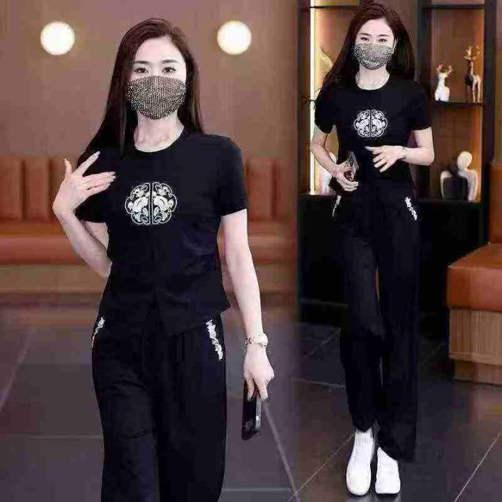全清价11.8休闲运动套装女夏季新中式炸街时尚减龄洋气显瘦冰丝阔腿裤两件套...
