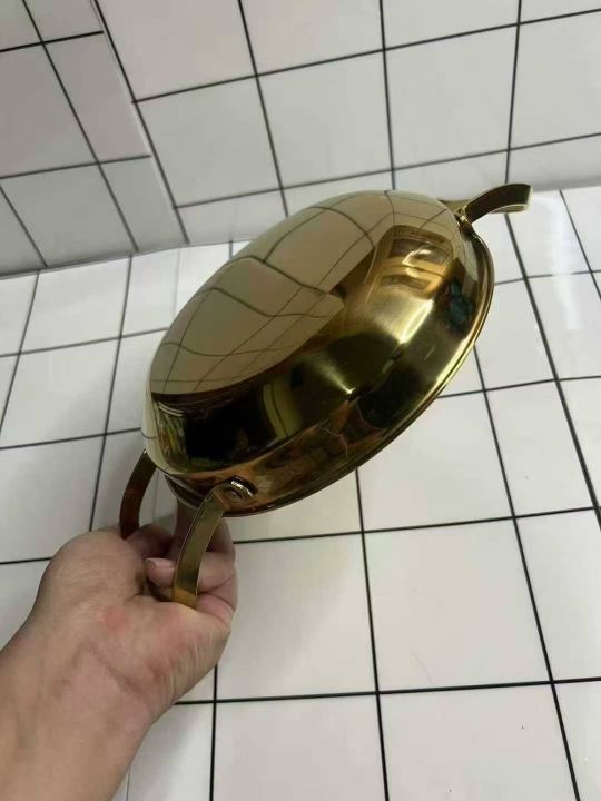 韩式不锈钢干锅海鲜锅,金色平底浅锅菜盘商用双耳锅电磁炉 ,高端货[庆祝]...