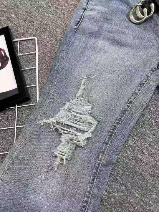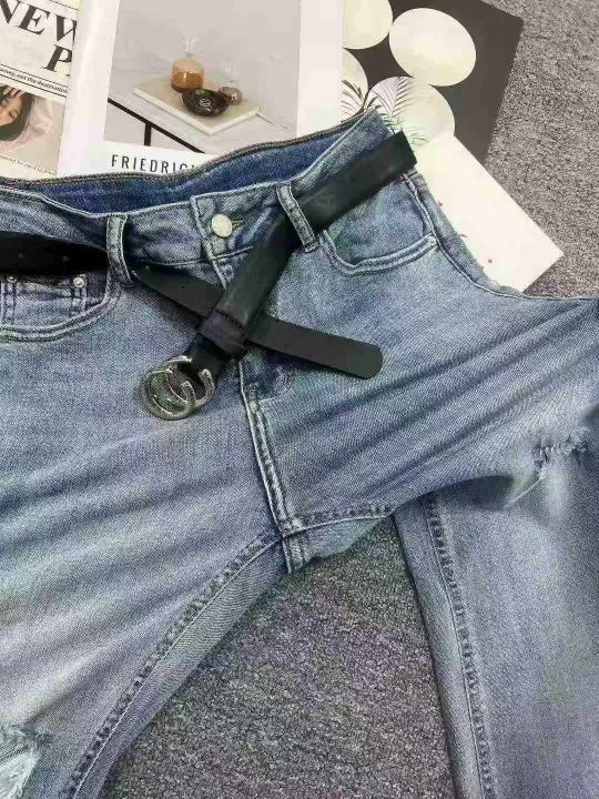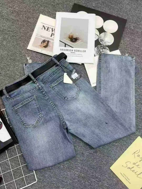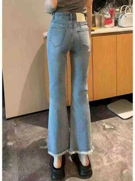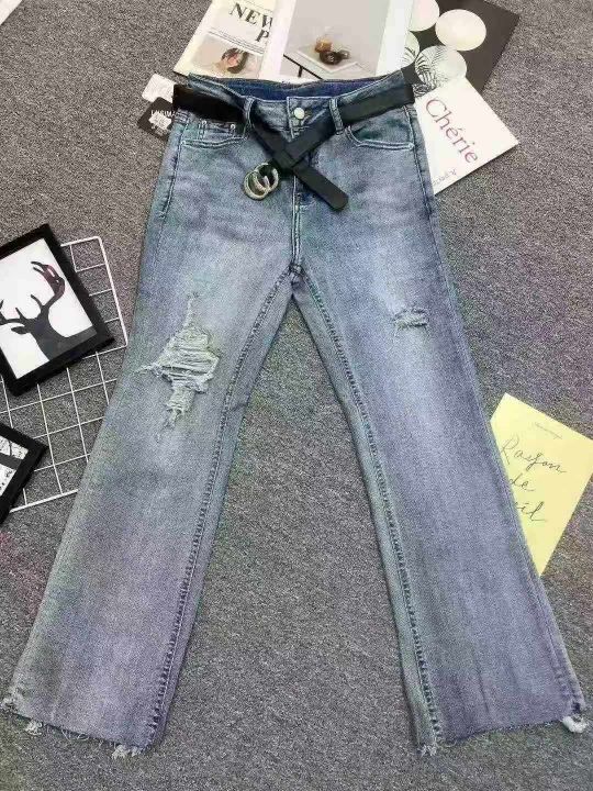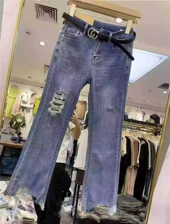☕️高弹力蓝色牛仔裤女新款春秋破洞毛边高腰显瘦九分微喇叭裤子170条全清12.8元,码数25-30,正品独立包装[庆祝][庆祝][庆祝]大货都有配皮带