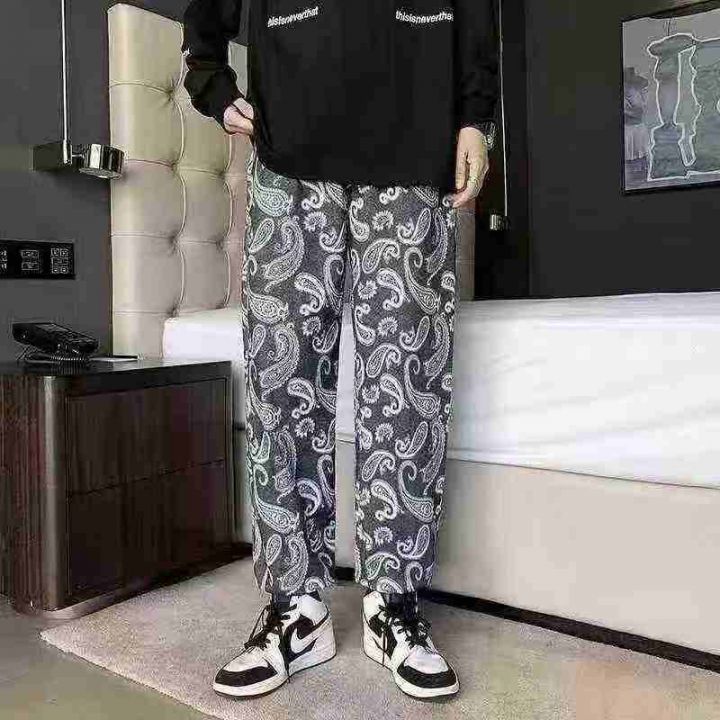 194条,腰果花印花休闲裤男秋季新款欧美ins潮牌嘻哈老爹裤宽松束脚裤子,独...