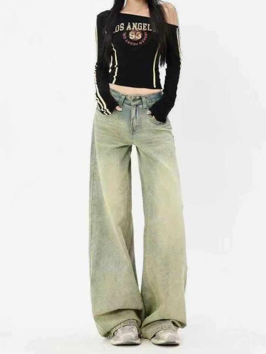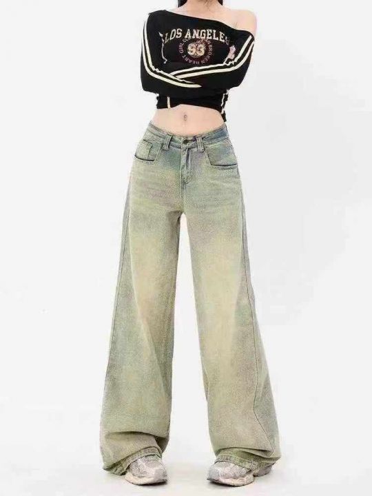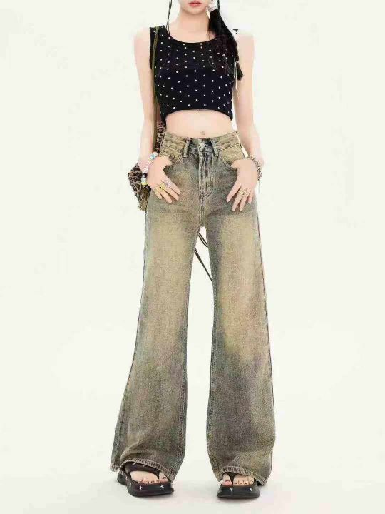 高品质☕️美式复古水洗做旧宽松版阔腿裤百搭新款宽松...