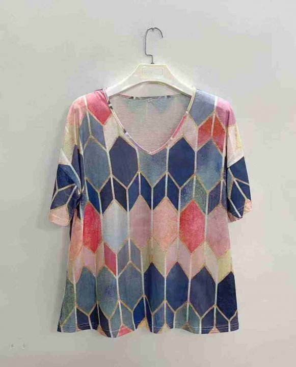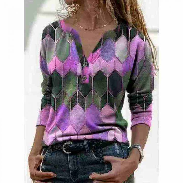 2935件外贸时尚印花撞色打底衫上衣女,尺码S~3XL,面...