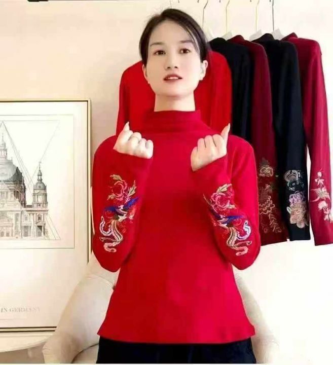 ️446件,秋冬新款德绒打底文艺复古刺绣百搭上衣民族中式高领保暖德绒长袖T恤,独立包装,码数M-3XL,全清5.8元,分货➕0.5
