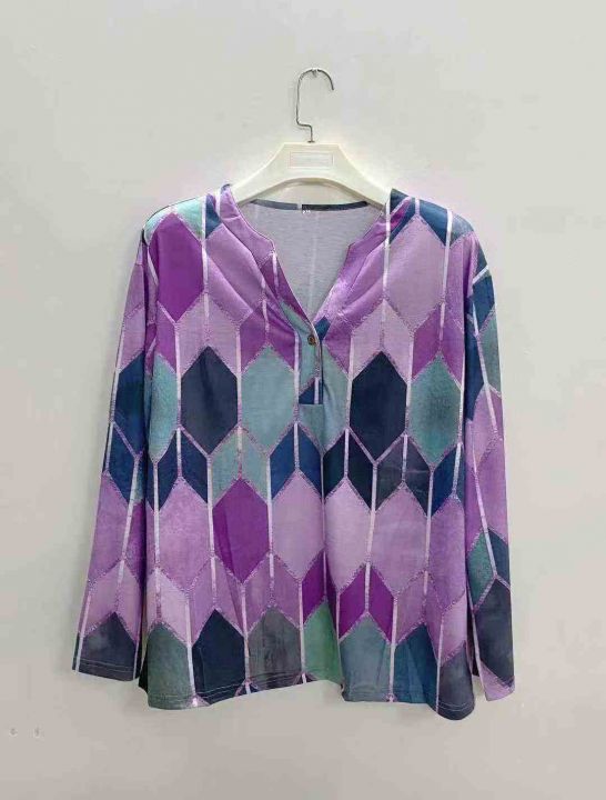 2935件外贸时尚印花撞色打底衫上衣女,尺码S~3XL,面...