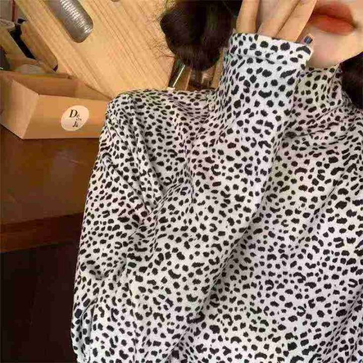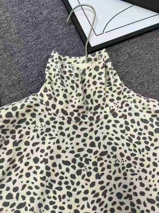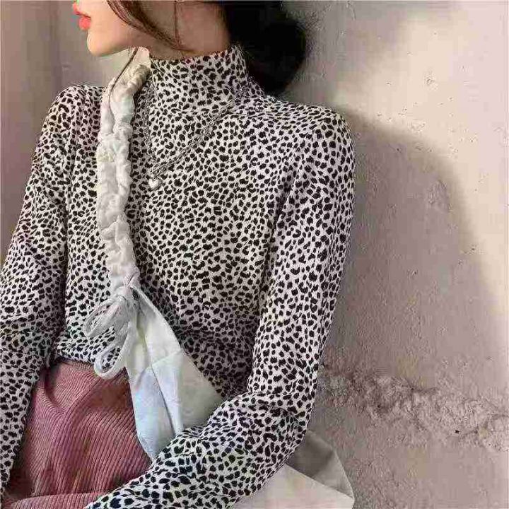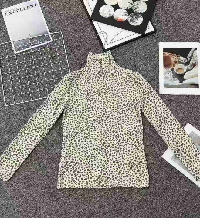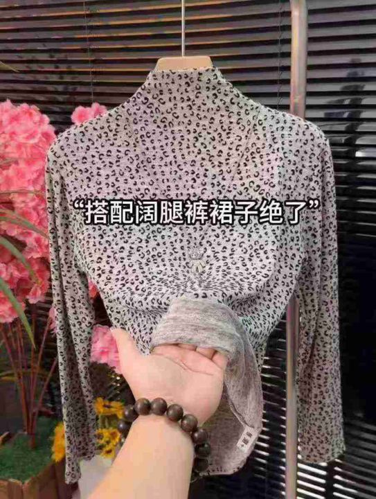 ☕️辣妹豹纹半高领打底衫T恤女时尚洋气百搭设计感上...