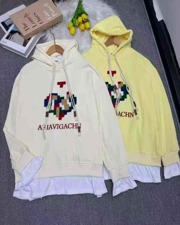 设计感小众大版慵懒风时尚休闲加绒假两件连帽卫衣,独立包装,两整款,后领包边,加绒,重工刺绣,码数1-5码,数量340件,分货加1,货号1029#64