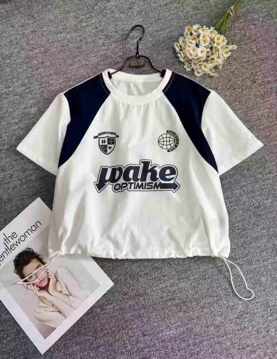 女装T恤潮流印花拼接短袖上衣,领口有包边,数量110件...