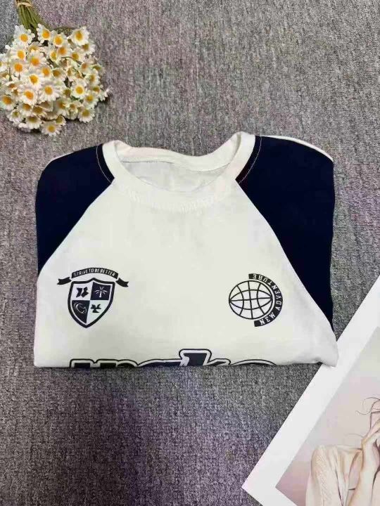 女装T恤潮流印花拼接短袖上衣,领口有包边,数量110件左右,独立包装,码数s-2xl,亏本清6.8(不分货)
