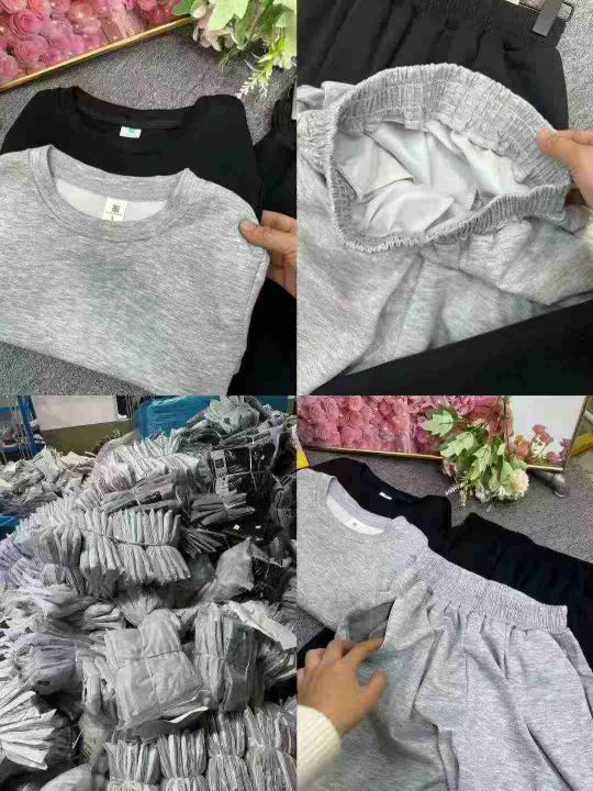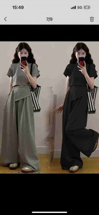 时尚阔腿休闲套装新款设计感洋气减龄显瘦短袖阔腿裤两件套,整款2色,灰色为主,独立包装,货品干净,后领包边,1到4码,3400套左右,12.8清,分货加1