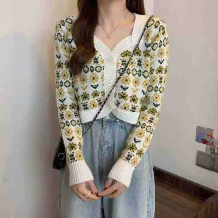 秋冬季新款小香风提花洋气加厚包芯纱短款毛衣开衫,独...