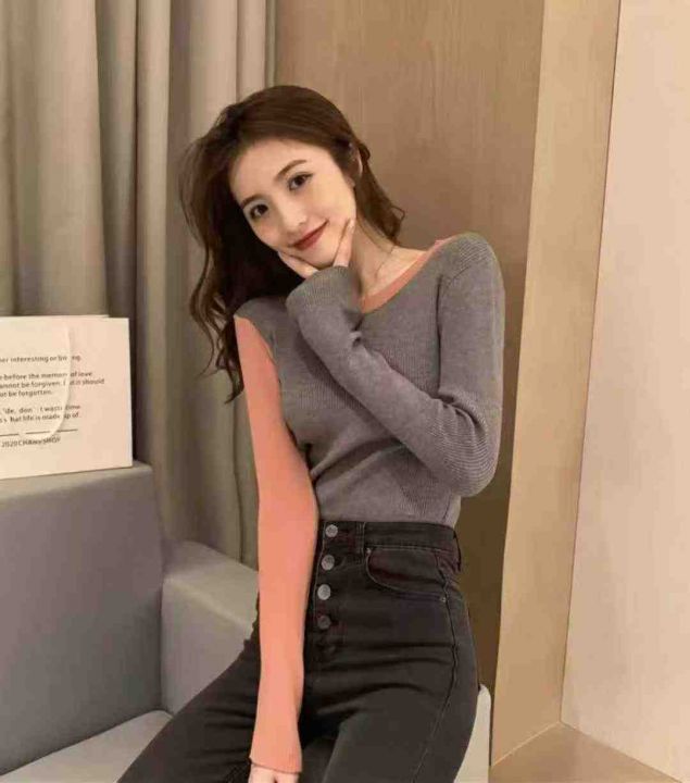 秋冬新款高弹力修身显瘦撞色设计感包芯纱打底长袖针织衫,独立包装,均码面料软糯舒适弹力大,159件,全清6.9元超低价秒杀!