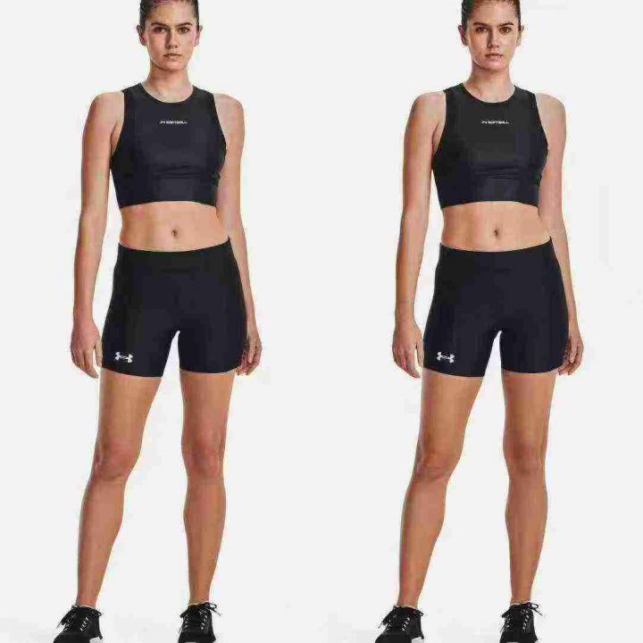 UA 女式跑步训练健身运动骑单车芭比鲨鱼瑜伽短裤,面料活力有超强弹性[哇],运动无束缚,立体剪裁高腰提臀[色],显瘦塑形,高品质,分货7.5