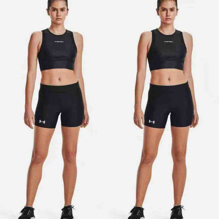 UA 女式跑步训练健身运动骑单车芭比鲨鱼瑜伽短裤,面料活力有超强弹性[哇],运动无束缚,立体剪裁高腰提臀[色],显瘦塑形,高品质,分货7.5。 货号:24862
