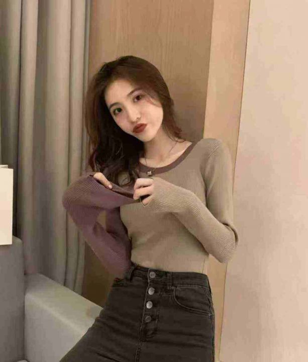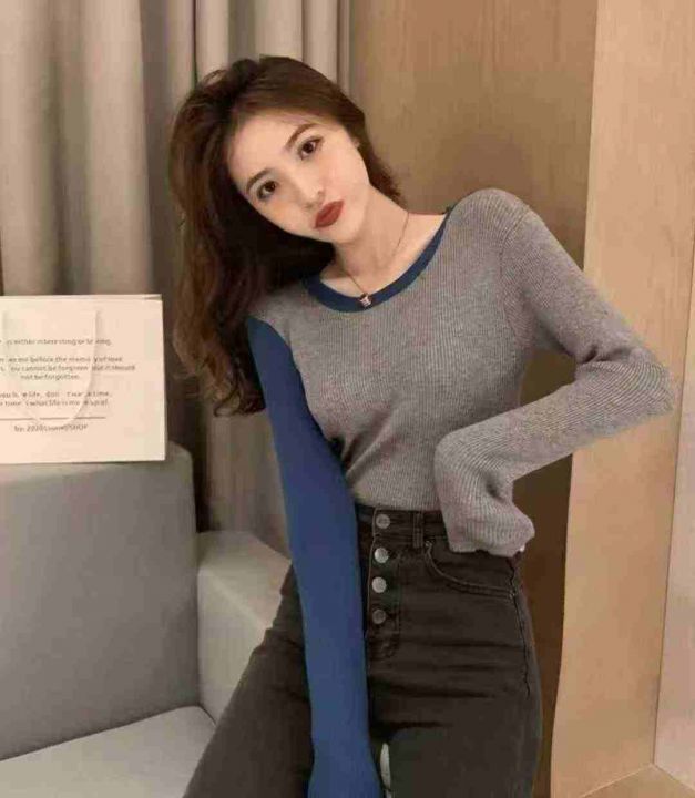 秋冬新款高弹力修身显瘦撞色设计感包芯纱打底长袖针织衫,独立包装,均码面料软糯舒适弹力大,159件,全清6.9元超低价秒杀!。 货号:1303