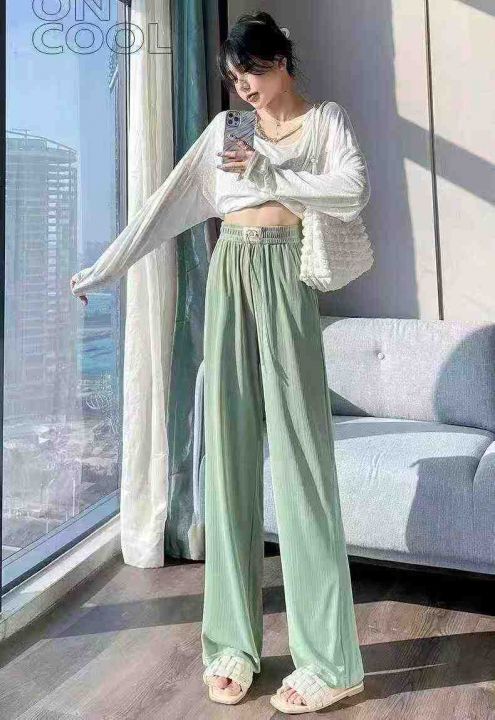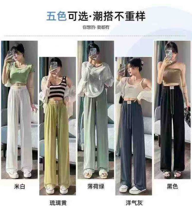 348件高腰直筒冰丝阔腿裤,裤头包边,面料垂顺有质感...