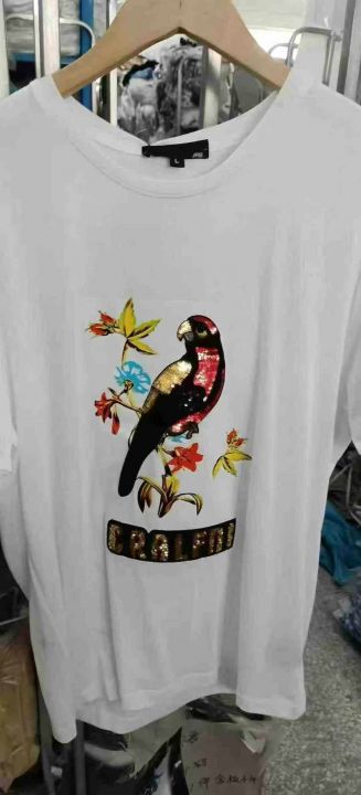 数量310件左右,码数M一4XL,两个图案(大鸟,小鸟图案)面料(丝光棉和纯棉200克)全部独立包装➕吊牌,实体店高品质,刺绣➕珠片➕烫钻一体,后领包条绝对高货