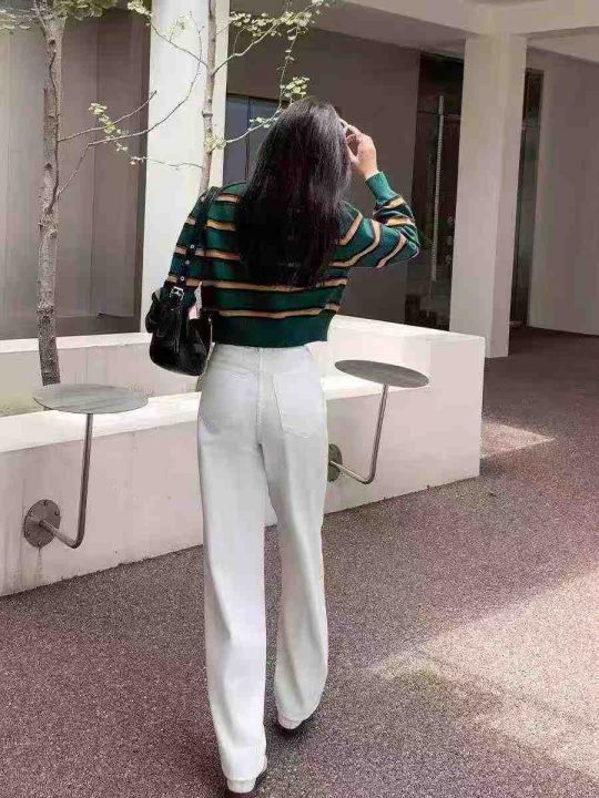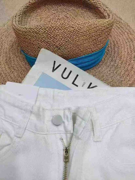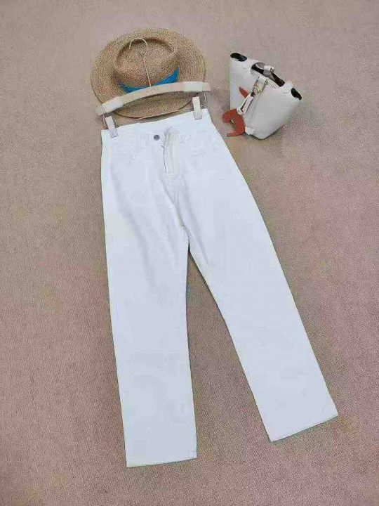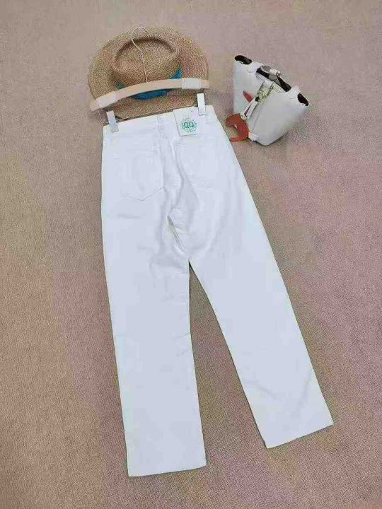 [月亮]:小个子休闲直筒窄版白色牛仔裤