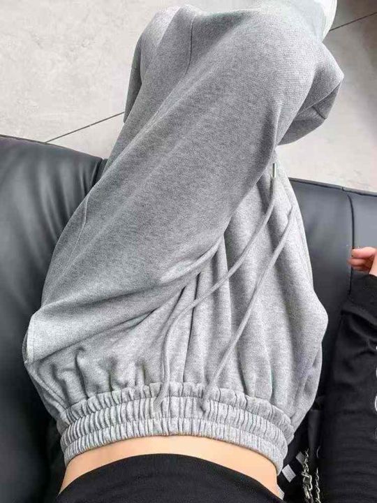 棉质运动裤女新款垂感休闲直筒春秋窄版松紧阔腿裤,数...