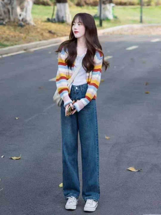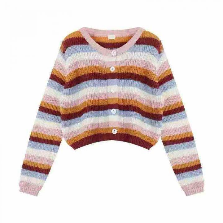 2025秋冬新款潮毛衣女显瘦休闲彩条针织外套开衫,独立...