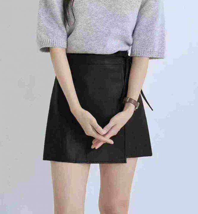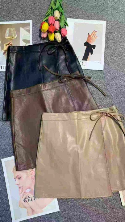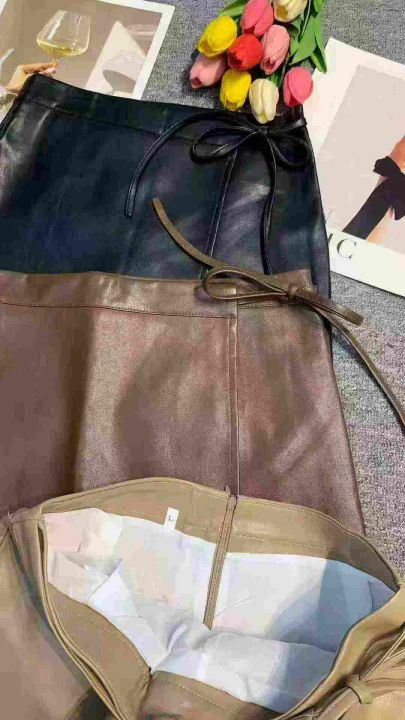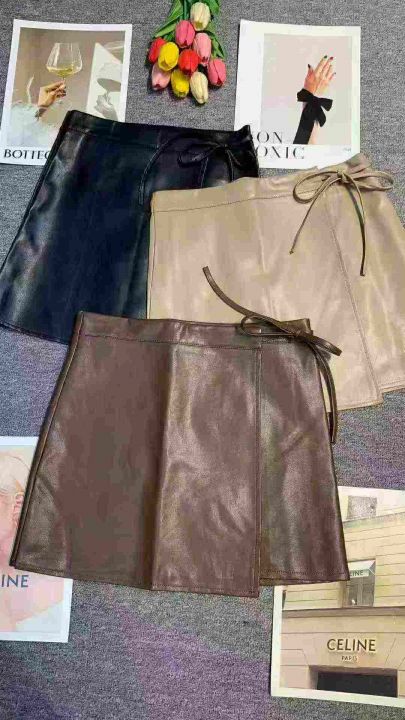 复古小众绑带设计感PU皮A字短裙,[爱心]40件左右,卡其色为主,码数S-XL,穿70-130斤,万佳档口货,原包装️无瑕疵,[666]实体店品质