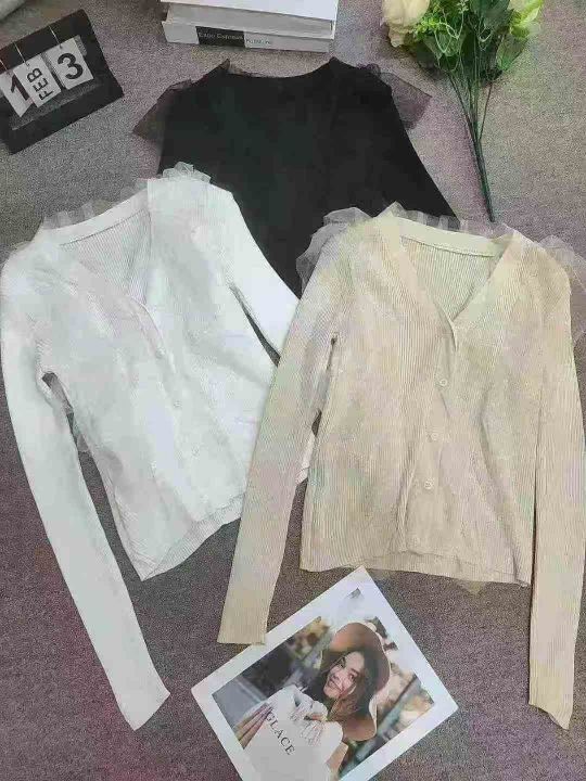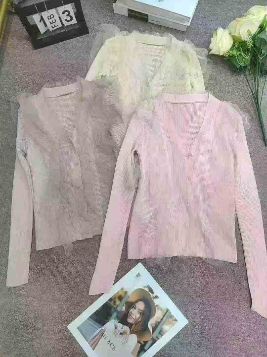 拼接网纱针织衫开衫修身显瘦网红靓妹毛衣打底小外套,独立包装,五个颜色,1850件,清9.5元,分➕5毛。 货号:24862