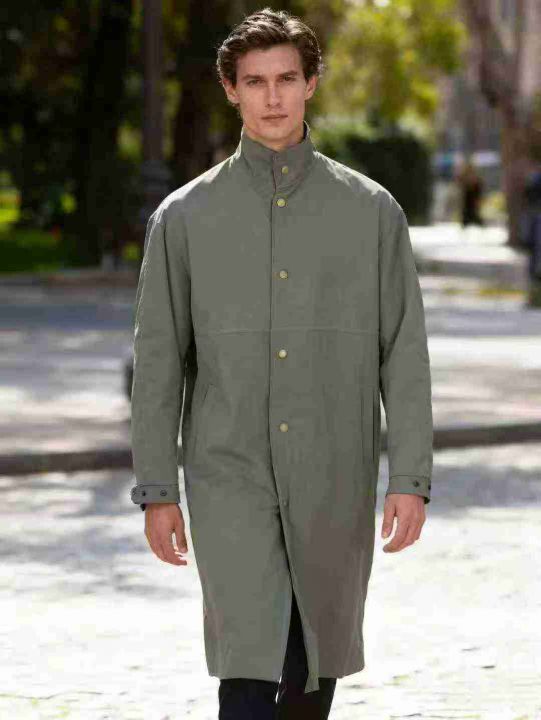 230件左右男士春季新立领薄款时尚披风休闲外套中长款风衣,整款2个色,码数M—2XL,独立包装。 货号:1303