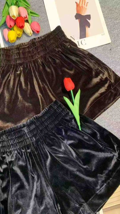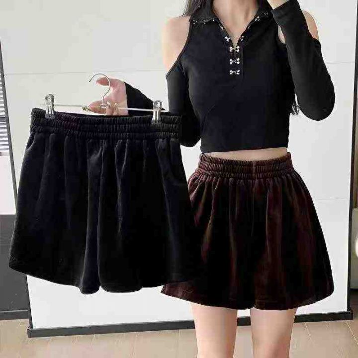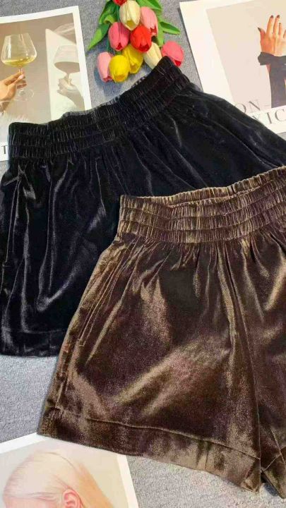 时尚ins金丝绒松紧腰设计宽松百搭短裤,[爱心]70左右,咖色为主,码数M-L,穿70-120斤,万佳档口货,原包装️无瑕疵,[666]实体店品质。 货号:1323