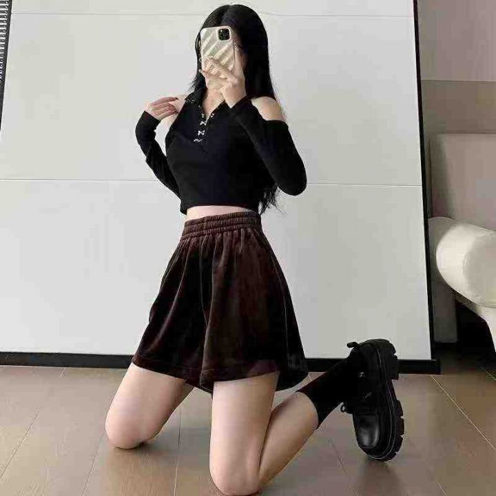 上新全清:9.9一件时尚ins金丝绒松紧腰设计宽松百搭短...