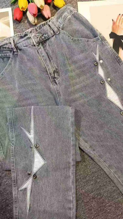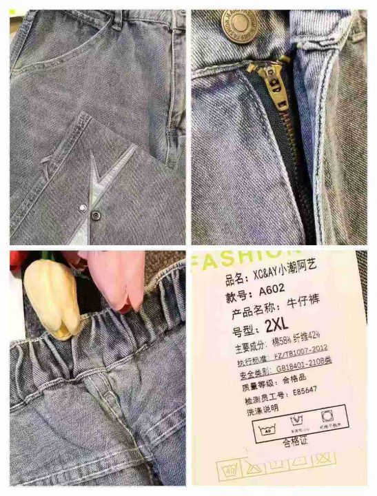 时尚ins小众别致遮肉百搭牛仔长裤,[爱心]50件左右,款号#A602,S码为主,码数S-2XL,穿80-150斤,万佳档口货,原包装️无瑕疵,[666]实体店品质。 货号:24862