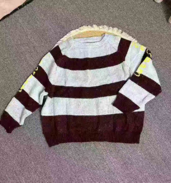 女装秋冬款复古撞色条纹ins港风大版厚重宽松毛衣针织衫上衣,独立包装,均码,633件,清8.8,分➕1