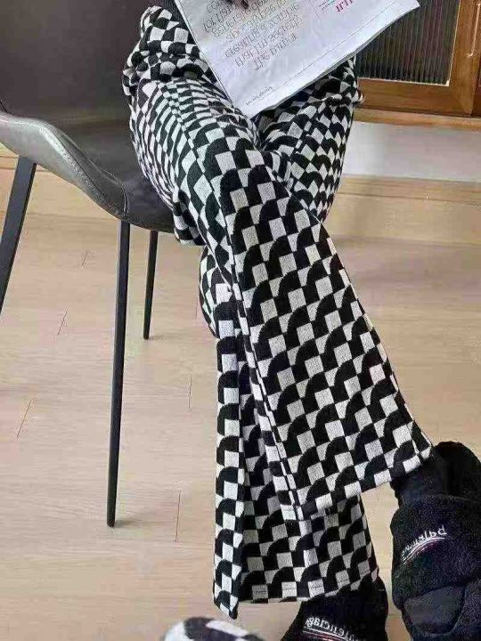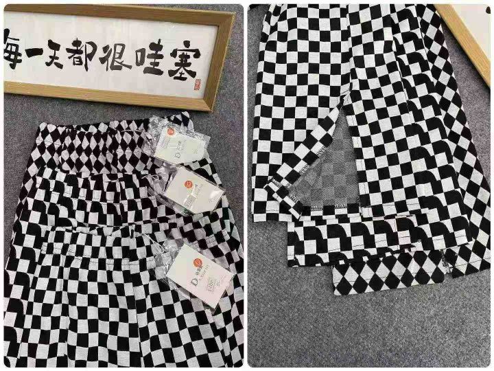棋盘格子喇叭裤529件8.5,面料微弹,松紧腰,裤脚开叉...