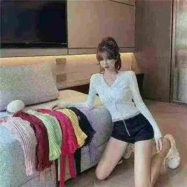 韩版2025chic长袖针织开衫女装外套毛衣春秋新款修身蕾丝边开衫,独立包装,均码,950件左右,清8.5,分➕1