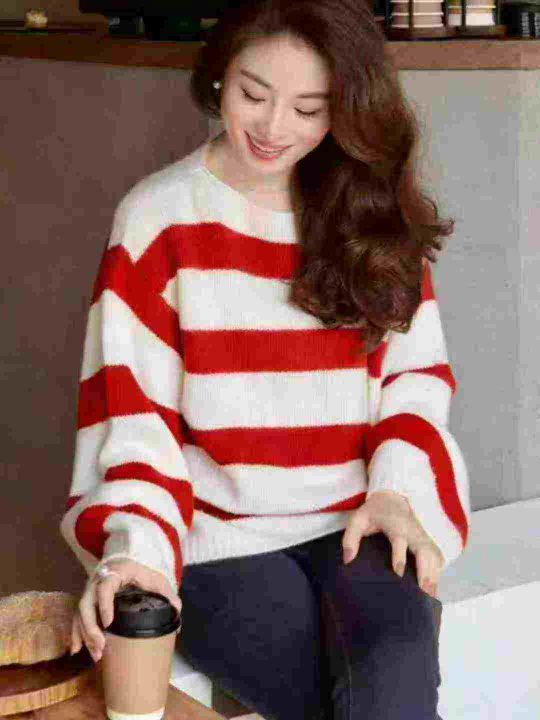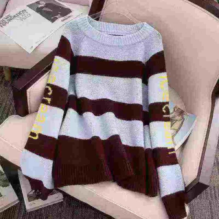 女装秋冬款复古撞色条纹ins港风大版厚重宽松毛衣针织衫上衣,独立包装,均码,633件,清8.8,分➕1