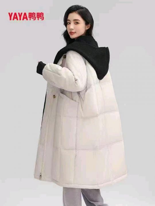 鸭鸭品牌中长款女士羽绒服,带针织围巾帽,三个码数大版型泡芙款,,只有一个颜色一百件左右,要的速度!清货45