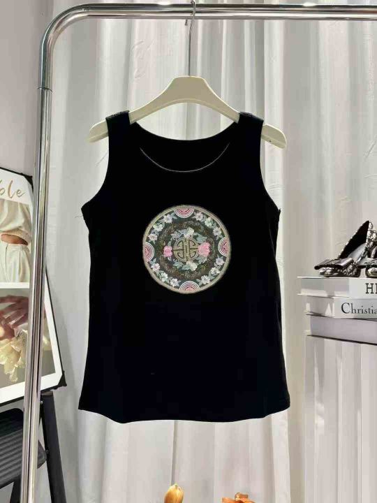 190件新中式国风重工刺绣背心辣妹外穿上衣,面料柔软...