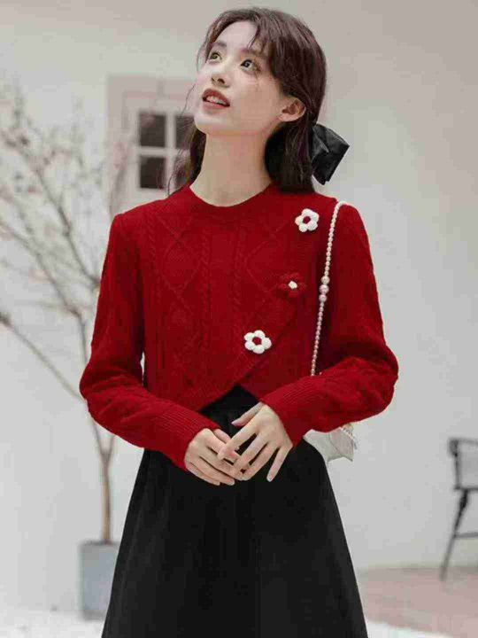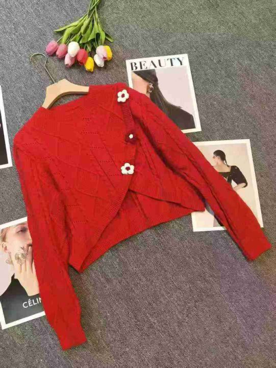 秋冬甜美花朵纽扣不规则减龄包芯纱毛衣,[爱心]241件,均码穿80-130斤,万佳档口新货,工厂原包装无瑕疵,实体店品质,分货加1️⃣