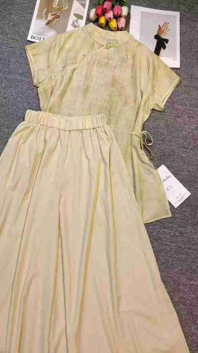 新中式气质绑带禅意上衣裙裤套装,[爱心]67套左右,款号#7186,M-L码为主,码数S-L,穿80-130斤,万佳档口货,原包装️无瑕疵,[666]实体店品质