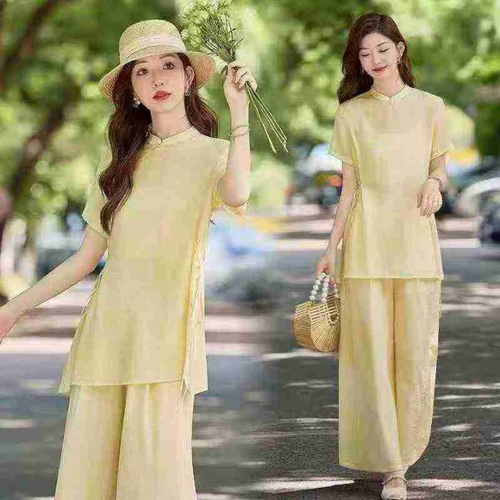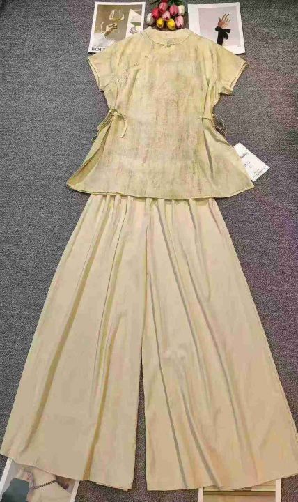 上新全清:18.8一套新中式气质绑带禅意上衣裙裤套装,...
