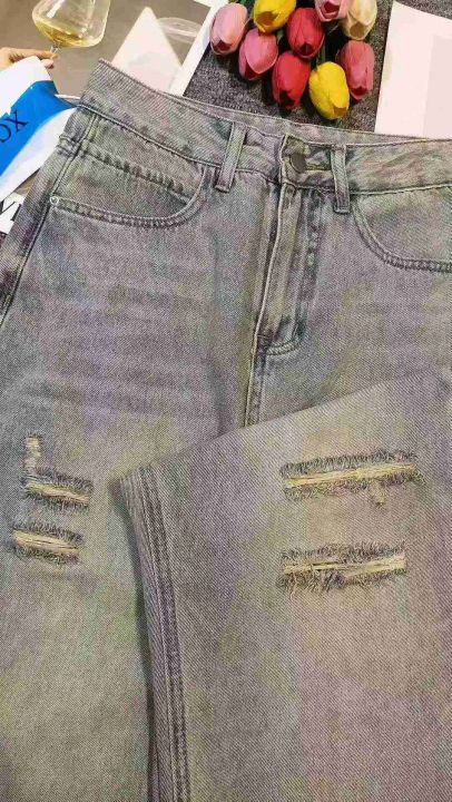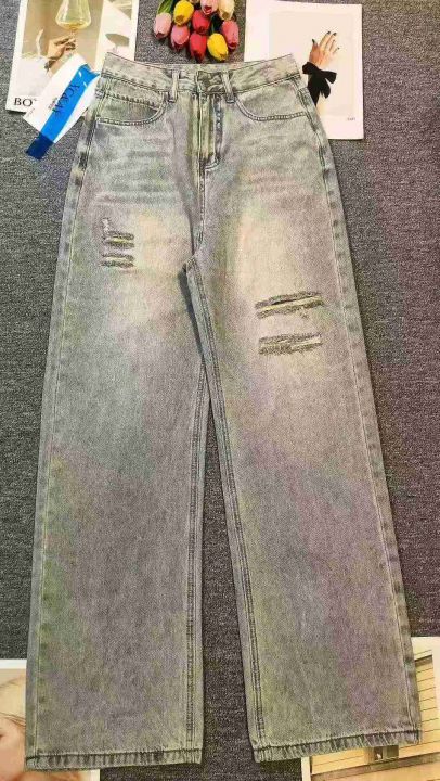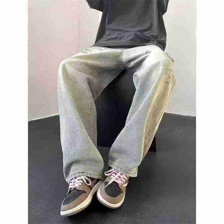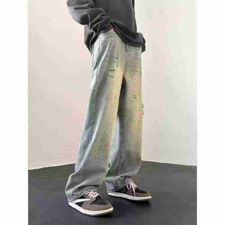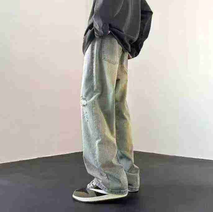 复古黄泥做旧破洞设计宽松百搭潮牌牛仔裤,[爱心]30件左右,款号#A815,码数M-2XL,穿80-150斤,万佳档口货,原包装️无瑕疵,(模特图仅供参考),[666]实体店品质。 货号:24862