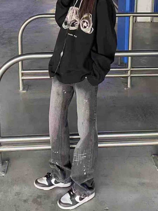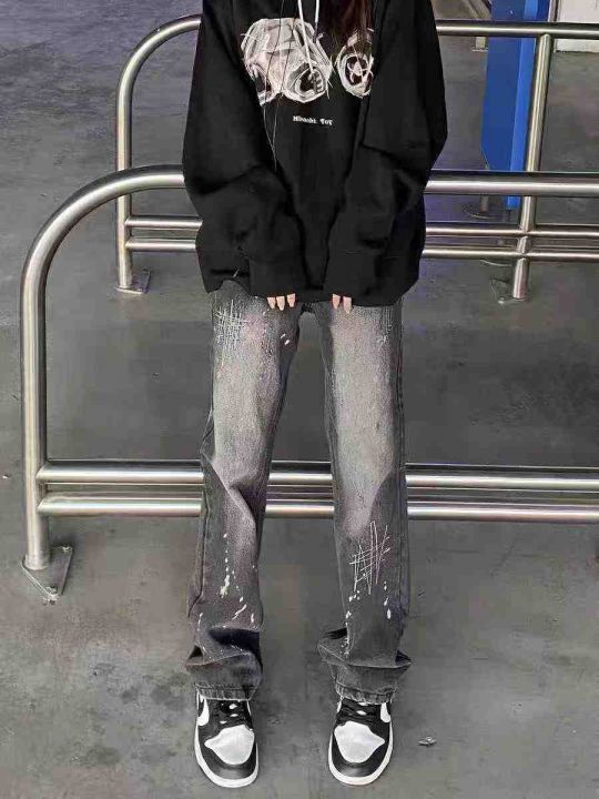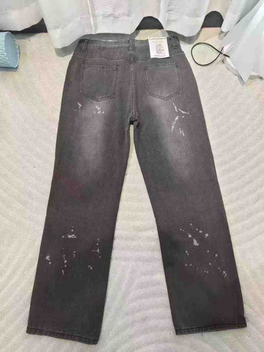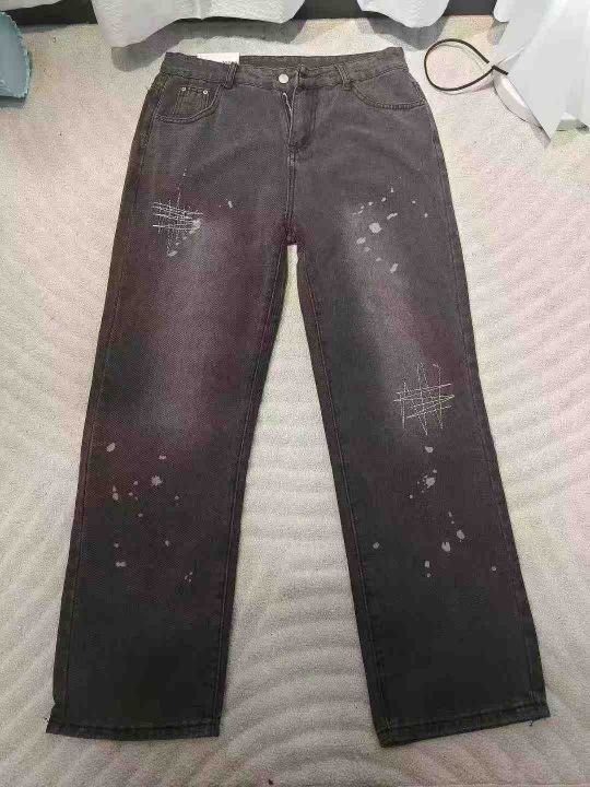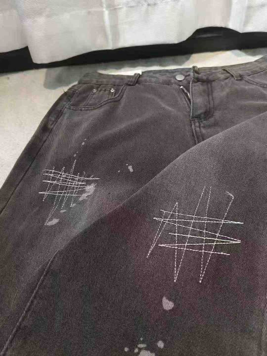 男女同款美式街头复古高街vibe风刺绣泼墨直筒百搭牛仔裤 数量191件 尺码S--3XL 独立包装带吊牌 有码数清单 大货干净漂亮。 货号:1323