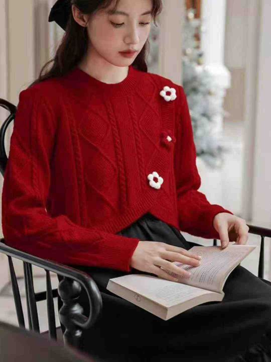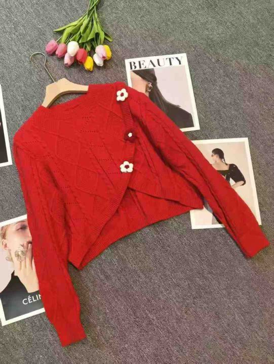 秋冬甜美花朵纽扣不规则减龄包芯纱毛衣,[爱心]241件,均码穿80-130斤,万佳档口新货,工厂原包装无瑕疵,实体店品质,分货加1️⃣。 货号:1323