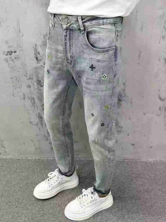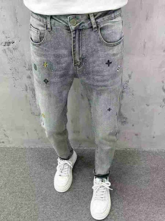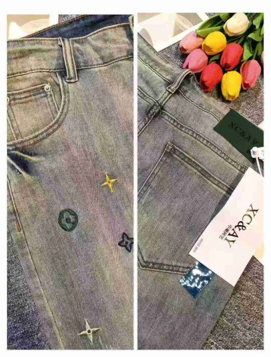 时尚百搭水洗刺绣设计感潮牌牛仔裤,[爱心]130件左右,款号#A807,码数M-2XL,穿80-150斤,万佳档口货,原包装️无瑕疵,(模特图仅供参考),[666]实体店品质,分货加一。 货号:1303