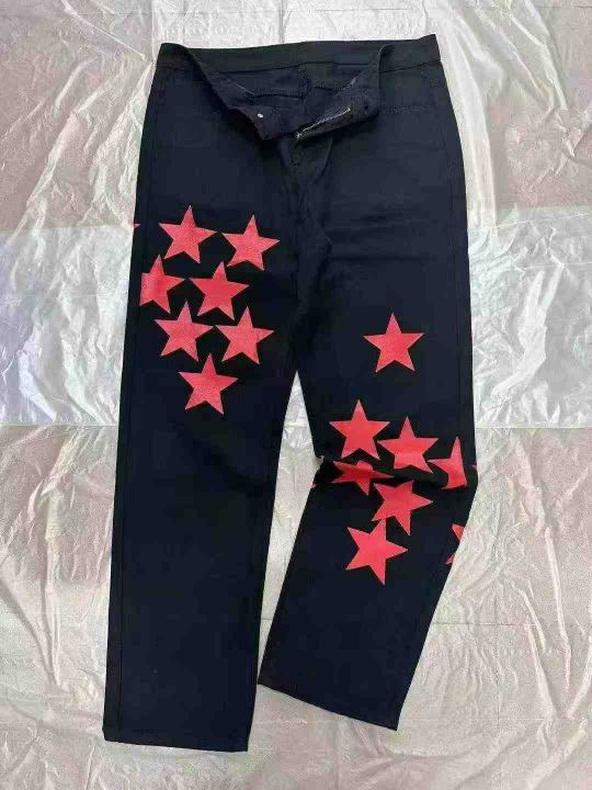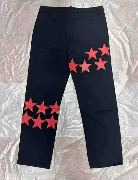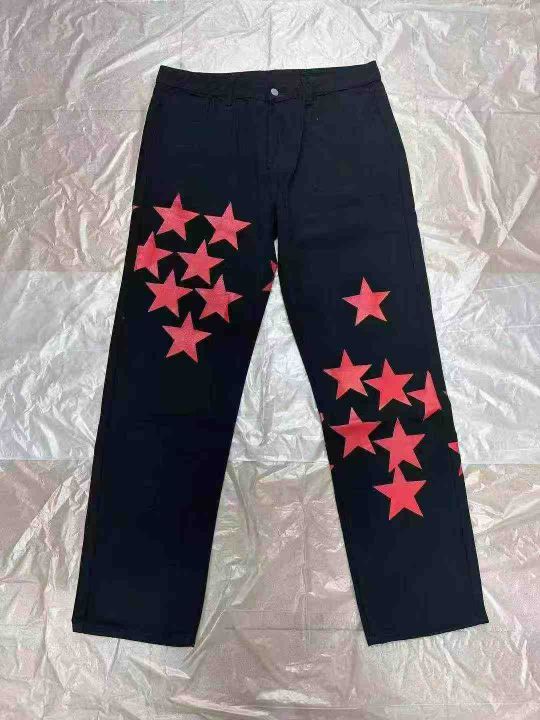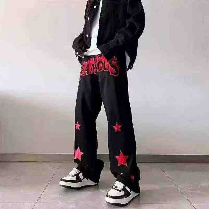 美式街头星星印花牛仔裤子,男装高街复古嘻哈直筒宽松长裤,柔软舒适,潮流时尚,100件起分货9.9