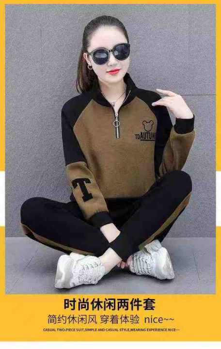 全清价13.9半拉链卫衣运动套装女时尚洋气拼接两件套,...