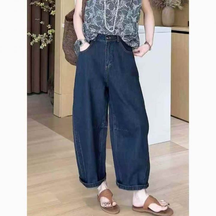 #牛仔裤批发复古水洗棉正腰 高腰弯刀牛仔阔腿宽松显瘦...