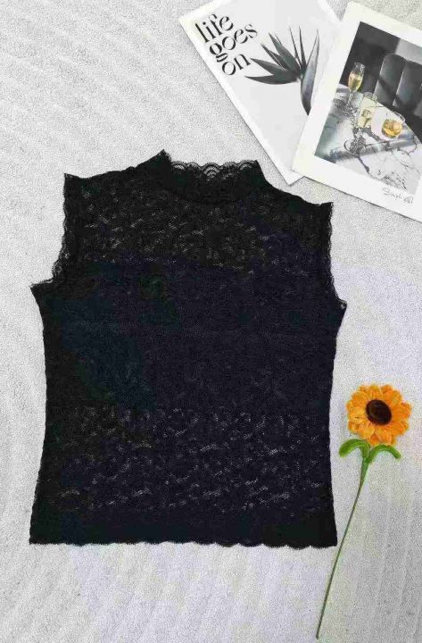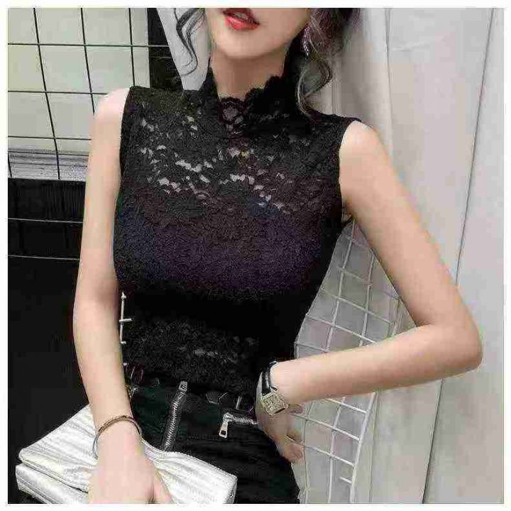 【性感女人味】秋冬时尚百搭蕾丝打底衫/内搭/单穿镂空蕾丝假领背心女半高领